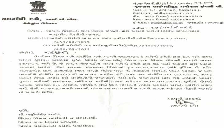ઓડિટ રિપોર્ટમાં મહાકૌભાંડ જોઈ જીએલપીસી કચેરીએ ગત માર્ચ 2021થી તાત્કાલિક અસરથી કાર્યવાહીના આદેશ કર્યા હતા. આ પછીના પત્રમાં તો જીએલપીસી એ સીધી ફરિયાદ દાખલ કરવા હુકમ કર્યો હતો. સરેરાશ 2.29 કરોડના કૌભાંડમાં સંડોવાયેલ જવાબદારો શોધી તેમના વિરુદ્ધ ફરિયાદ દાખલ છેલ્લા 15 મહિનાથી એક આઇએએસ બીજા આઇએએસને વિનંતી કરે છે પણ જાણે પથ્થર ઉપર પાણી હોય તેમ કંઈ જ થતું નથી. સરકારના પૈસા ખુદ સરકારના જ માણસો દ્વારા સગેવગે થઈ ગયા છતાં સરકારના અધિકારીઓ કંઈ કરી શકતા નથી તે અતિ ગંભીર વિષય બની ગયો છે.